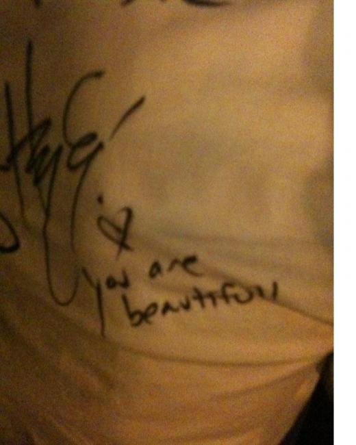 Before the concert, the band held a private meet and greet for our girls. It was so powerful. I was blown away to watch as band members broke through language barriers with genuine care and compassion. Lots of hugs, laughter, giggles and tears. The band wrote life giving messages to the girls on their shirts, arms, etc, reminding them that they are loved, valued and beautiful.